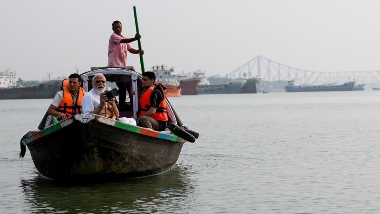 PM Modi says, "For every Bengali, the Ganga occupies a very special place. One can say that the Ganga flows through the soul of Bengal. Her divine waters carry the timeless spirit of an entire civilisation. This morning in Kolkata, I spent some time on the banks of the Hooghly… pic.twitter.com/Z6k2L9lMDC