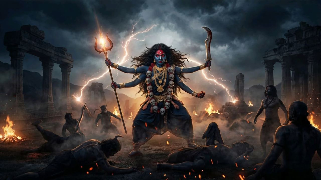 नई दिल्ली: हिंदू धर्म की पावन परंपरा में चैत्र नवरात्रि के सातवें दिन मां कालरात्रि की उपासना का विशेष महत्व है. इस दिन देवी दुर्गा का कालिका स्वरूप पूजा जाता है, जो काले रंग का होता है. मां के विशाल केश चारों ओर फैले रहते हैं और उनकी चार भुजाओं में खड्ग, कांटा तथा माला शोभायमान होती है. भक्त मानते हैं कि इनकी पूजा से जीवन के सभी भय मिट जाते हैं और घर में सकारात्मक ऊर्जा का संचार होता है.
