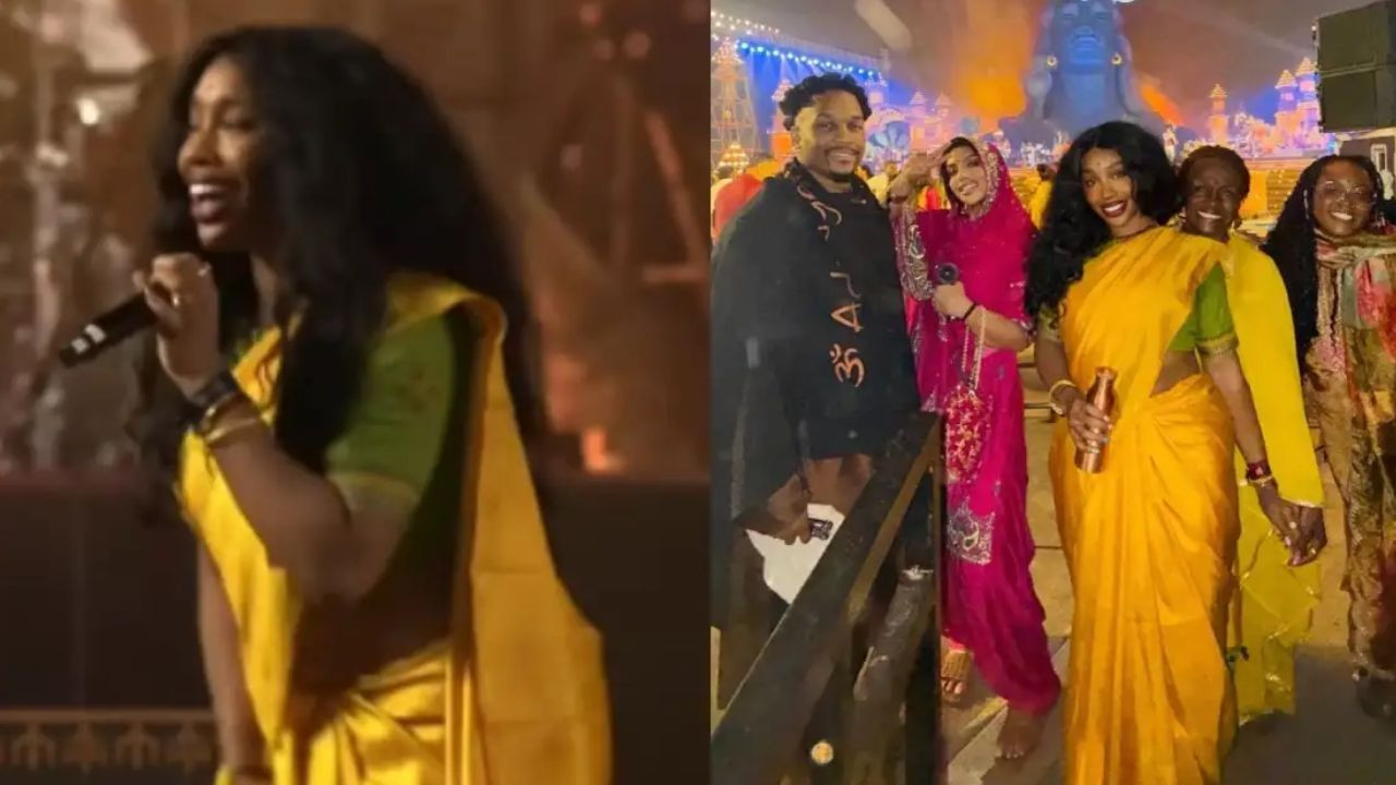 ग्रैमी विजेता अमेरिकी सुपरस्टार SZA (सोलाना इमानी रोवे) ने भोलेनाथ की आराधना में शामिल होकर स्टेज पर साड़ी और बिंदी में नृत्य किया, शिव शंभू का जयकारा लगाया… pic.twitter.com/YcNQ7ewZdZ
