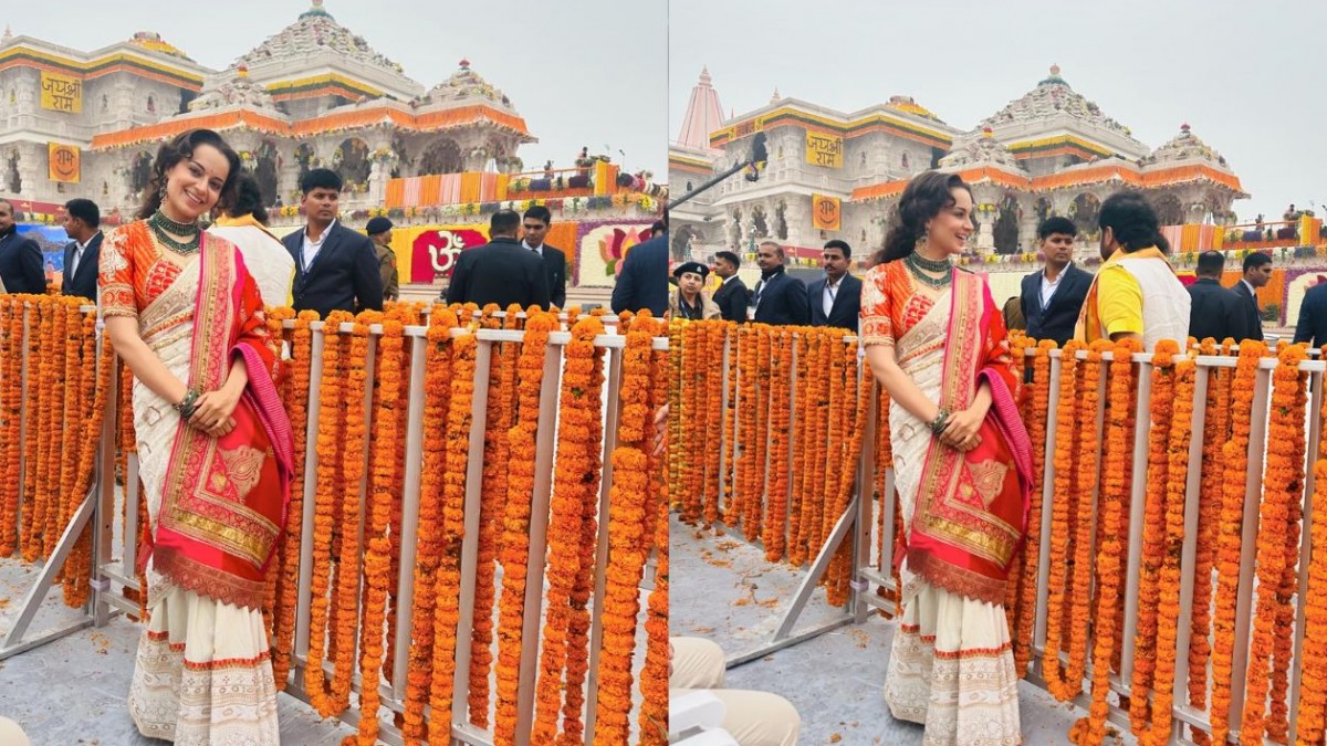 नई दिल्ली: आज पूरे देश में राम भक्ति में लोग डूबे हुए दिखाई दे रहे हैं जिधर देखों उधर लोग रामलला की भक्ति में लीन हैं. अब इस बीच कई सितारे भी इस समारोह में शामिल हुए जिसमें जैकी श्रॉफ, रणबीर कपूर, आलिया भट्ट, कटरीना कैफ, विक्की कौशल, अमिताभ बच्चन और अभिषेक बच्चन जैसे सितारों का नाम शामिल है. अब कंगना रनौत के अयोध्या मंदिर से कई वीडियो सामने आ चुके है जिसमें उनका एक फिर से वीडियो आया है जिसमें वह साड़ी पहने पूरा श्रृंगार करे हुए नजर आ रही हैं. कंगना प्राण प्रतिष्ठा के समय झूमते हुई दिखाई दे रही हैं.
