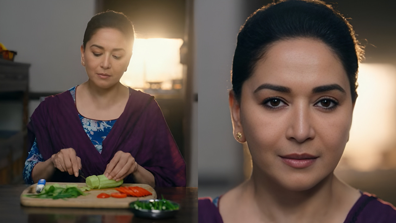 टीजर में उनका डी-ग्लैम लुक इतना इंटेंस है कि लगता है जैसे कोई आम सी दिखने वाली औरत के पीछे छिपा है खतरनाक राज. टीजर की शुरुआत एक सिंपल किचन सीन से होती है. माधुरी ब्लू कलर का सूट पहने, बिना मेकअप के सब्जियां काट रही हैं. बैकग्राउंड में रेडियो न्यूज चल रही है- 'शहर में सीरियल किलर फिर से सक्रिय हो गया है...' तभी माधुरी मुस्कुराते हुए 'भोली सी सूरत' गाना हंसने लगती हैं, जो 'दिल तो पागल है' फिल्म का आइकॉनिक ट्रैक है.