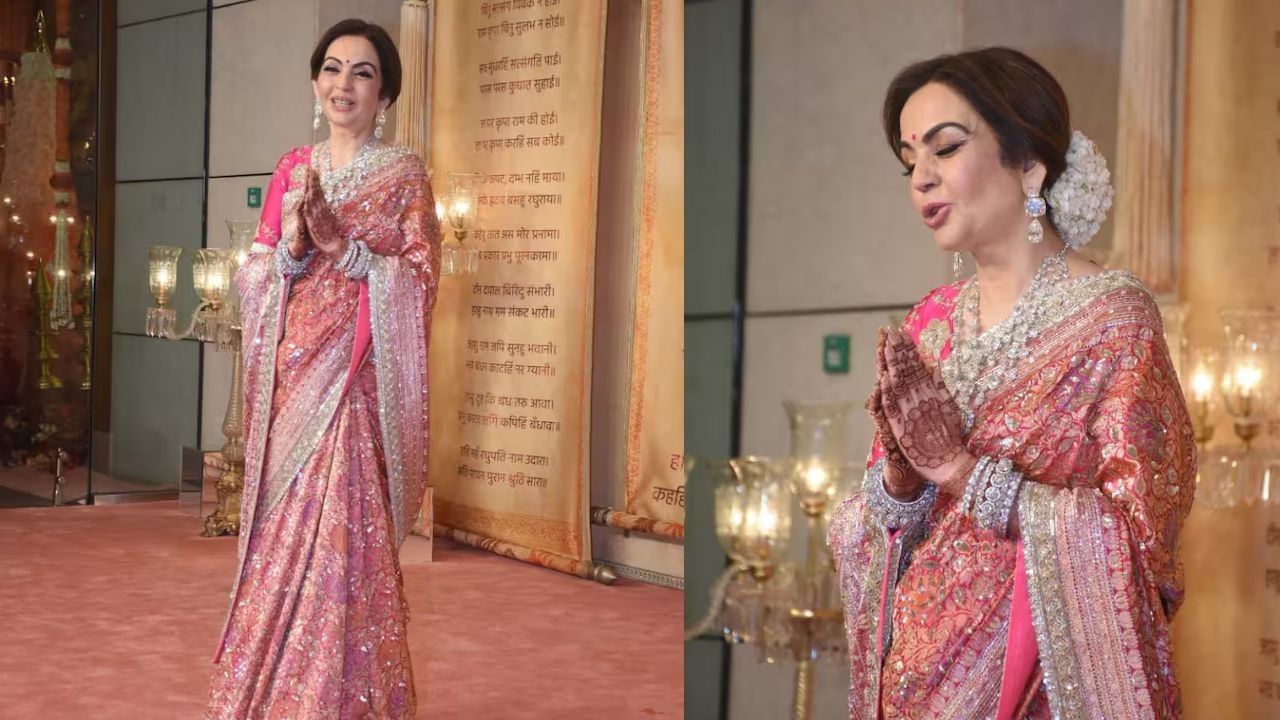 नीता अंबानी ने इस दौरान पिंक कलर की साड़ी पहनी जो कि उन पर काफी जच रहा था. बालों में गजरा उनके लुक को कंपलीट कर रहा है. आपको बता दें कि अनंत अंबानी और राधिका मर्चेंट ने 12 जुलाई को शादी की उससे पहले ममेरू की रस्म, हल्दी, मेहंदी और संगीत का फंक्शन भी सेलिब्रेट किया गया. इस दौरान बॉलीवुड के कई सितारों ने शिरकत ली.