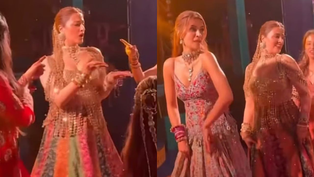 नूपुर ने संगीत की रात में बेहद खूबसूरत और चटक-मटक स्टाइल चुना. उन्होंने मल्टी-ह्यूड लहंगा पहना, जिसमें गुलाबी, नारंगी, हरा और अन्य ज्वेल टोन्स का शानदार मिश्रण था. यह लहंगा पैनल्ड स्कर्ट वाला था, जिसमें ढेर सारे मिरर वर्क, सीक्वेंस और एंब्रॉयडरी का इस्तेमाल किया गया था. लाइट्स में चमकता यह लहंगा नूपुर की खुशमिजाज और उत्साही दुल्हन वाली एनर्जी को बखूबी दिखा रहा था. वे पूरी तरह से ब्राइडल ग्लो में नजर आईं.
