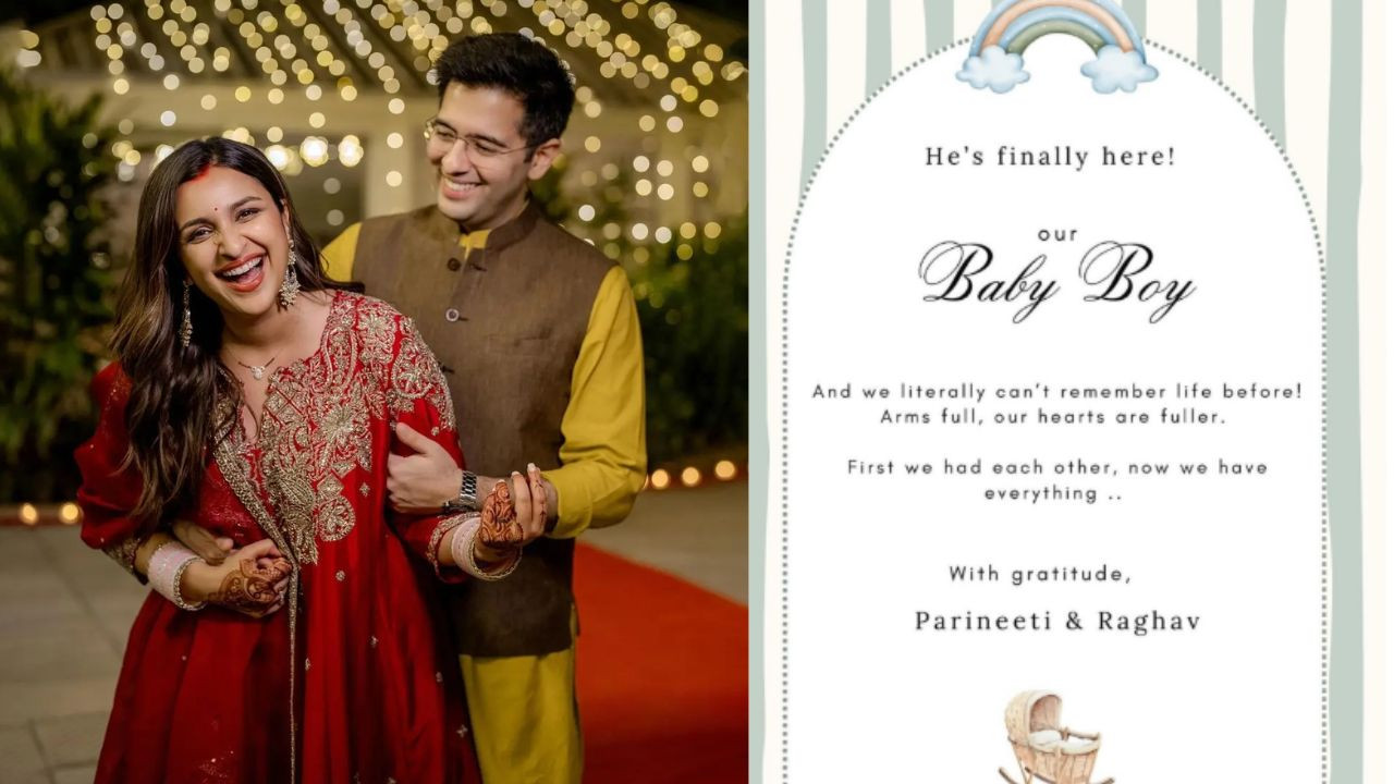 कपल ने इंस्टाग्राम पर एक जॉइंट पोस्ट शेयर किया, जिसमें एक क्रिब की फोटो है. कैप्शन में लिखा, 'वो आखिरकार आ गया!... हमारा बेबी बॉय... और हम सच में पुरानी जिंदगी को याद ही नहीं कर पा रहे. बाहें भरी हुईं, दिल और भी भरा हुआ. पहले हमारे पास एक-दूसरे का साथ था, अब हमारे पास सब कुछ है... आभार के साथ, परिणीति और राघव.' पोस्ट में सेलाडॉन कलर की स्ट्राइप्स वाली क्रिएटिव डिजाइन ने फैंस का दिल जीत लिया. यह अनाउंसमेंट छोटी दीवाली के शुभ मुहूर्त पर हुआ, जो परिवार के लिए दुगुनी खुशी लेकर आया है.
