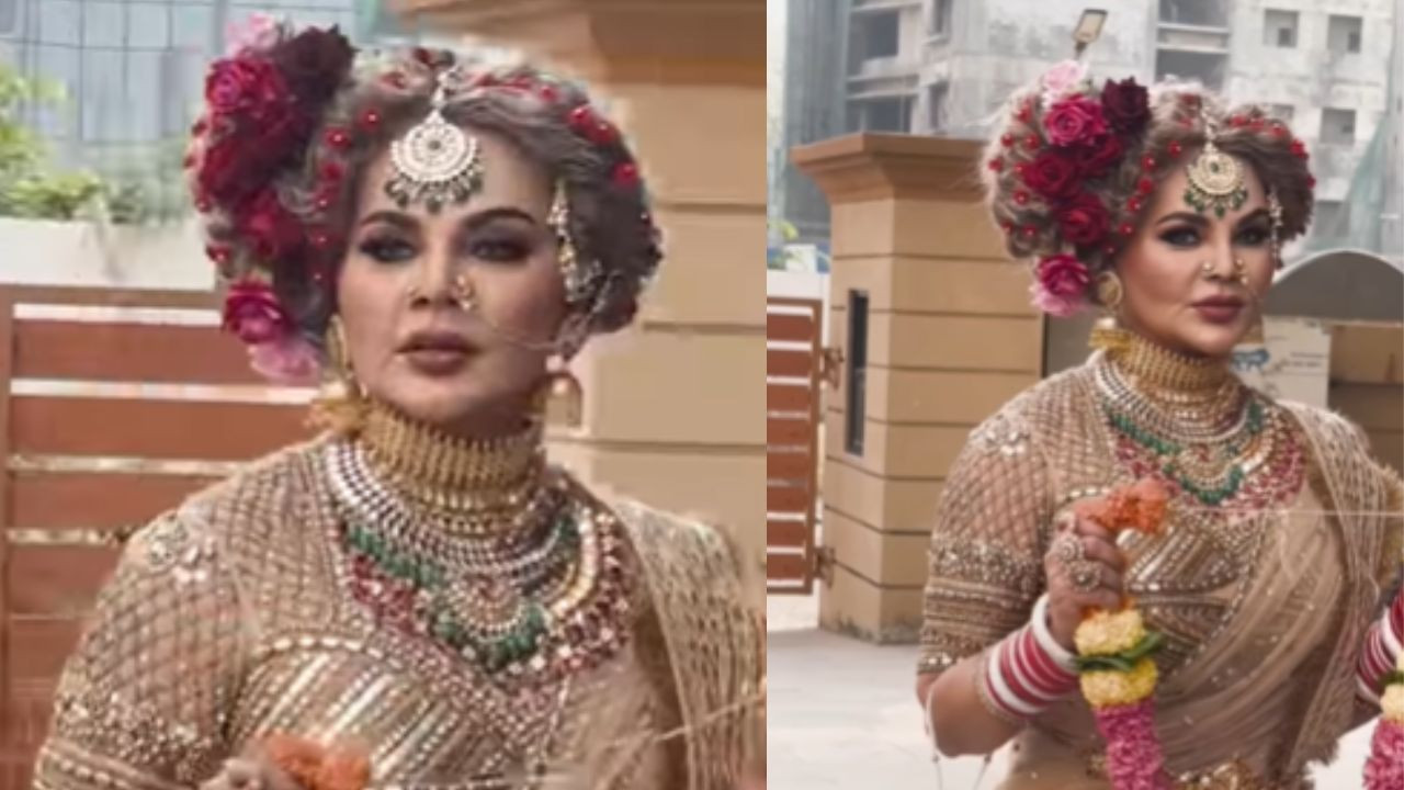 मुंबई: बॉलीवुड की कंट्रोवर्सी क्वीन राखी सावंत एक बार फिर अपनी हरकतों से चर्चा बटोर रही हैं. हाल ही में उनका एक वीडियो सोशल मीडिया पर तेजी से वायरल हो रहा है, जिसमें वे पूरी तरह दुल्हन के लुक में नजर आ रही हैं. हाथ में वरमाला थामे हुए राखी पैपराजी के सामने खड़ी हैं और मजाकिया अंदाज में कह रही हैं- 'आज मैं पूरी एक्जोटिक दुल्हन बनी हूं.'