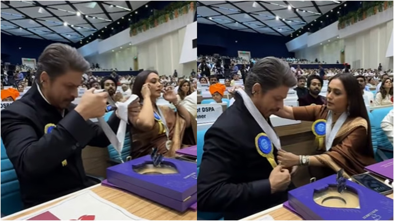 इस भव्य समारोह के बीच एक हल्का-फुल्का और दिल जीत लेने वाला पल कैमरे में कैद हो गया. सोशल मीडिया पर वायरल हुए वीडियो में शाहरुख खान अपने राष्ट्रीय पुरस्कार पदक को पहनने की कोशिश करते नजर आए, लेकिन उन्हें इसे सही से एडजस्ट करने में परेशानी हुई. उन्होंने पदक को दोबारा उतार लिया. उसी वक्त उनके बगल में बैठीं रानी मुखर्जी ने तुरंत स्थिति को समझा और आगे बढ़कर शाहरुख की मदद की. उन्होंने पदक को एडजस्ट कर शाहरुख को सहज कर दिया. यह नजारा देख दर्शक और फैंस भावुक हो गए और सोशल मीडिया पर इस दोस्ती को जमकर सराहा.