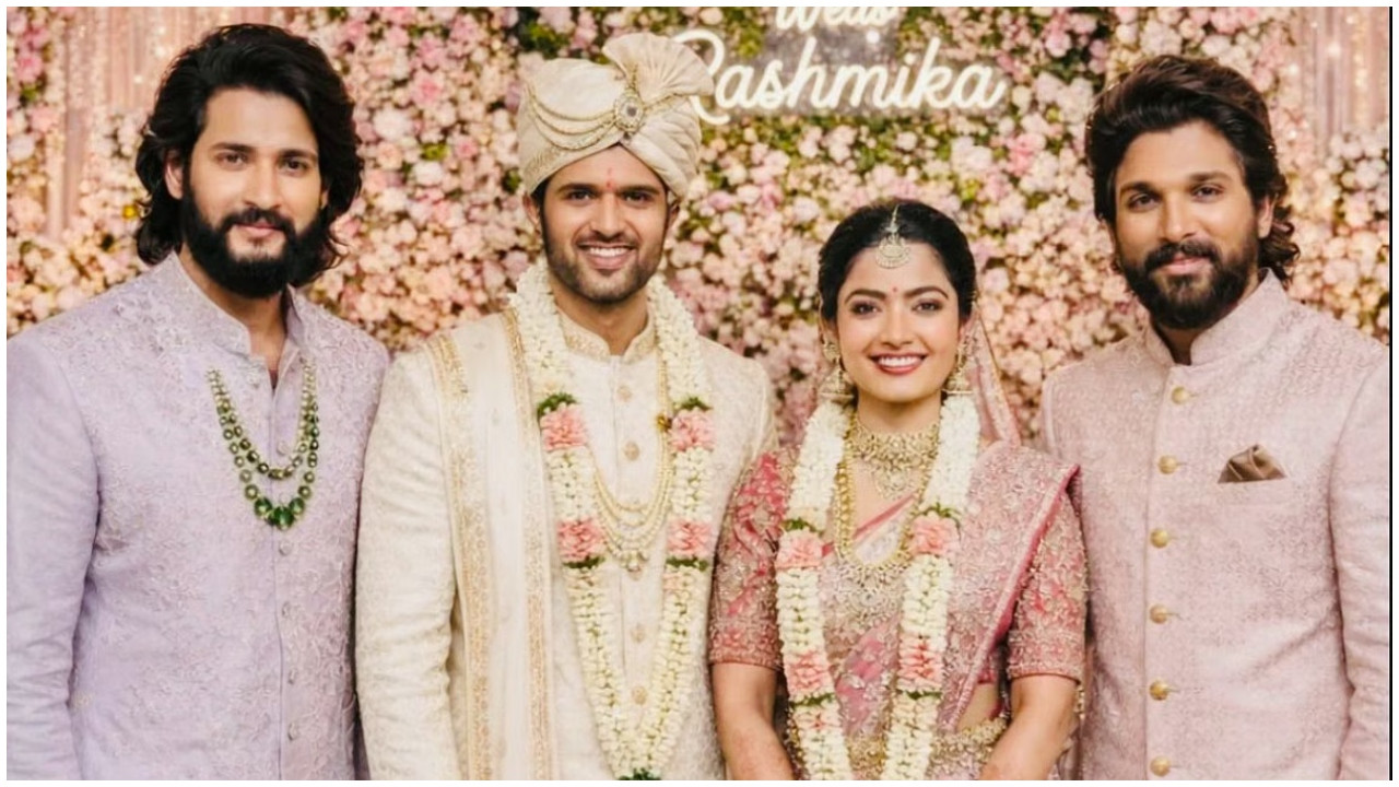 मुंबई: दक्षिण सिनेमा की चर्चित जोड़ी रश्मिका मंदाना और विजय देवरकोंडा 26 फरवरी 2026 को शादी के बंधन में बंधने जा रहे हैं. शादी को लेकर जबरदस्त उत्साह है, लेकिन अब तक कपल ने कोई आधिकारिक शादी की तस्वीर साझा नहीं की है. इसी बीच सोशल मीडिया पर एक तस्वीर तेजी से वायरल हो गई जिसमें दोनों दूल्हा दुल्हन के रूप में नजर आ रहे हैं. उनके साथ सुपरस्टार महेश बाबू और अल्लू अर्जुन भी पोज देते दिख रहे हैं.