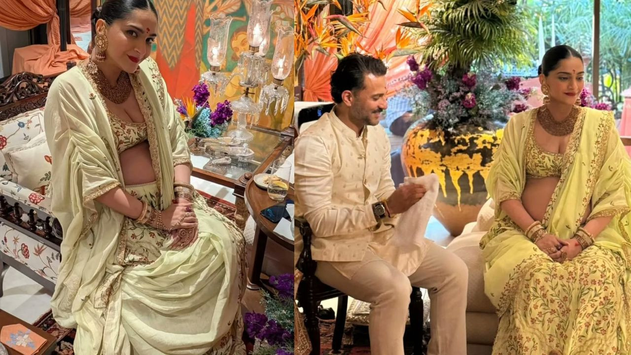सोनम कपूर ने इस मौके पर एक कस्टम-मेड लाइम ग्रीन लहंगा चुना, जिसमें डेलिकेट फ्लोरल एम्ब्रॉयडरी और मैचिंग केप थी. यह लुक न सिर्फ सुंदर था बल्कि प्रेग्नेंसी के दौरान कम्फर्ट और एलिगेंस का परफेक्ट बैलेंस दिखाता था. उनकी हैवी गोल्ड ज्वेलरी और प्रेग्नेंसी ग्लो ने उन्हें पूरी तरह से गॉडेस जैसा लुक दिया. पति आनंद आहूजा के साथ वे इस खुशी के पल में बेहद रेडिएंट नजर आईं.