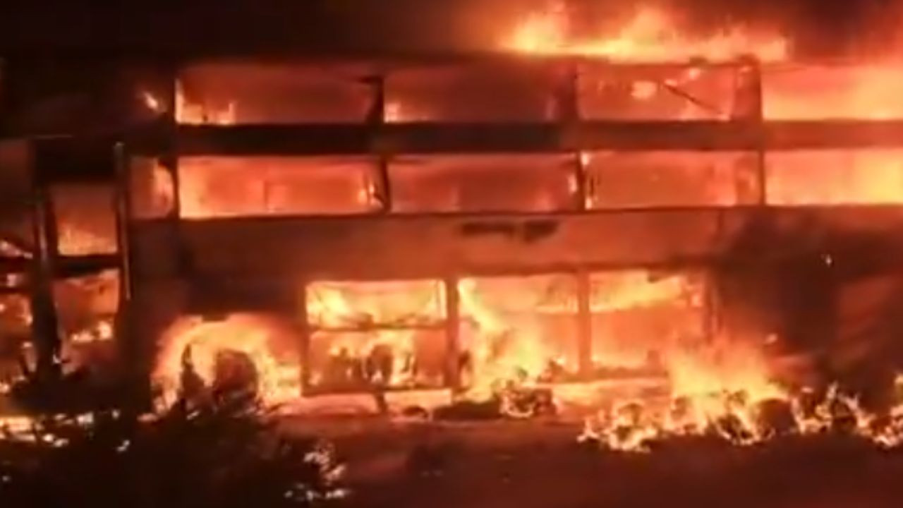 पुलिस के अनुसार, प्राइवेट AR BCVR ट्रैवल्स की यह बस तेज़ रफ्तार में नंद्याल से अल्लागड्डा की ओर जा रही थी. इसी दौरान सिरिवेल्ला मेट्टा के पास अचानक बस का एक टायर फट गया, जिससे चालक का वाहन पर से नियंत्रण हट गया. बेकाबू बस डिवाइडर पार कर सामने से आ रहे मोटरसाइकिलों से लदे कंटेनर लॉरी से टकरा गई. टक्कर इतनी ज़ोरदार थी कि कुछ ही सेकंड में दोनों वाहनों में धमाके के साथ आग लग गई. हादसे के तुरंत बाद आग की लपटों और घने धुएं ने पूरे इलाके को अपनी चपेट में ले लिया. बस के अंदर बैठे यात्रियों में चीख-पुकार मच गई. चश्मदीदों के मुताबिक, कुछ ही पलों में आग ने बस के अगले हिस्से को घेर लिया था, जिससे ड्राइवर और क्लीनर बाहर निकलने का मौका नहीं पा सके. वहीं कंटेनर ट्रक के चालक की भी आग में झुलसकर मौत हो गई.