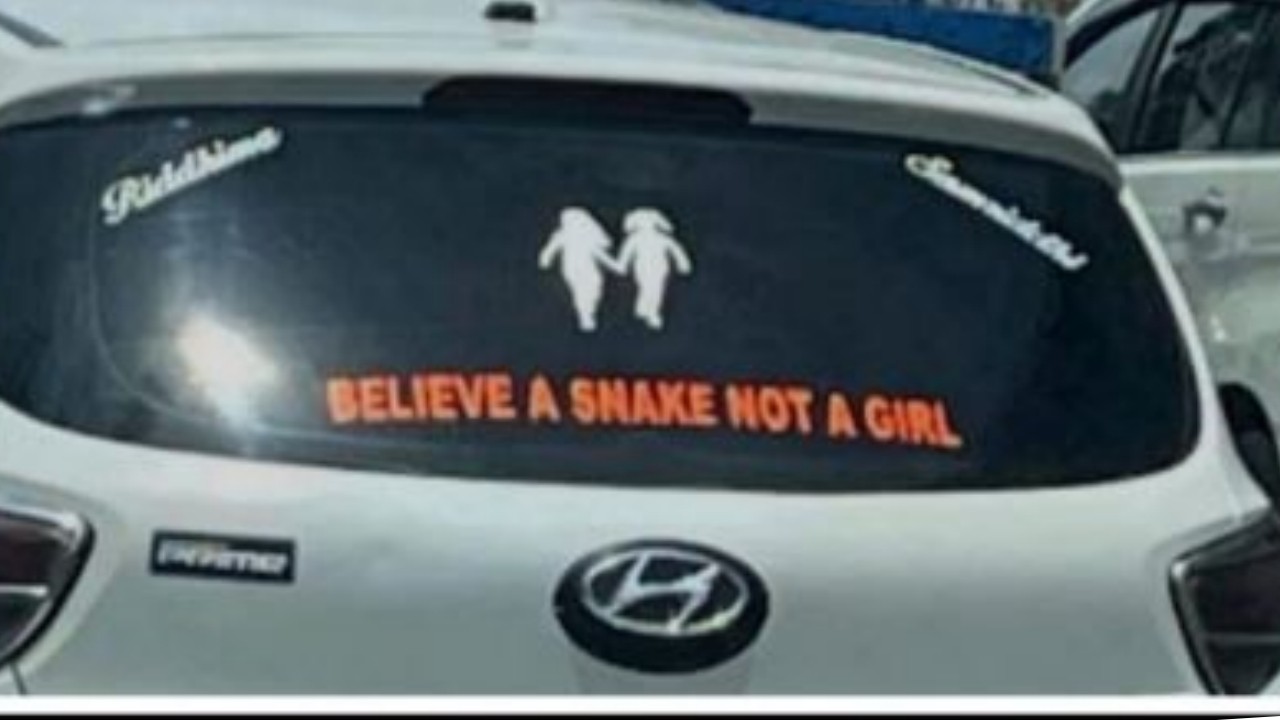 मामला कर्नाटक का बताया जा रहा है. यहां एक शख्स ने अपनी कार के पीछे वाले शीशे पर 'Believe a snake not a girl' वाला स्टिकर चिपका रखा था. कर्नाटक पुलिस के एक जवान की नजर इस स्टिकर पर पड़ गयी. उसे लगा कि इस स्टिकर में कहीं न कहीं राग द्वेष छिपा हुआ है और यह महिलाओं के खिलाफ एक सोच को बढ़ावा दे रहा है.