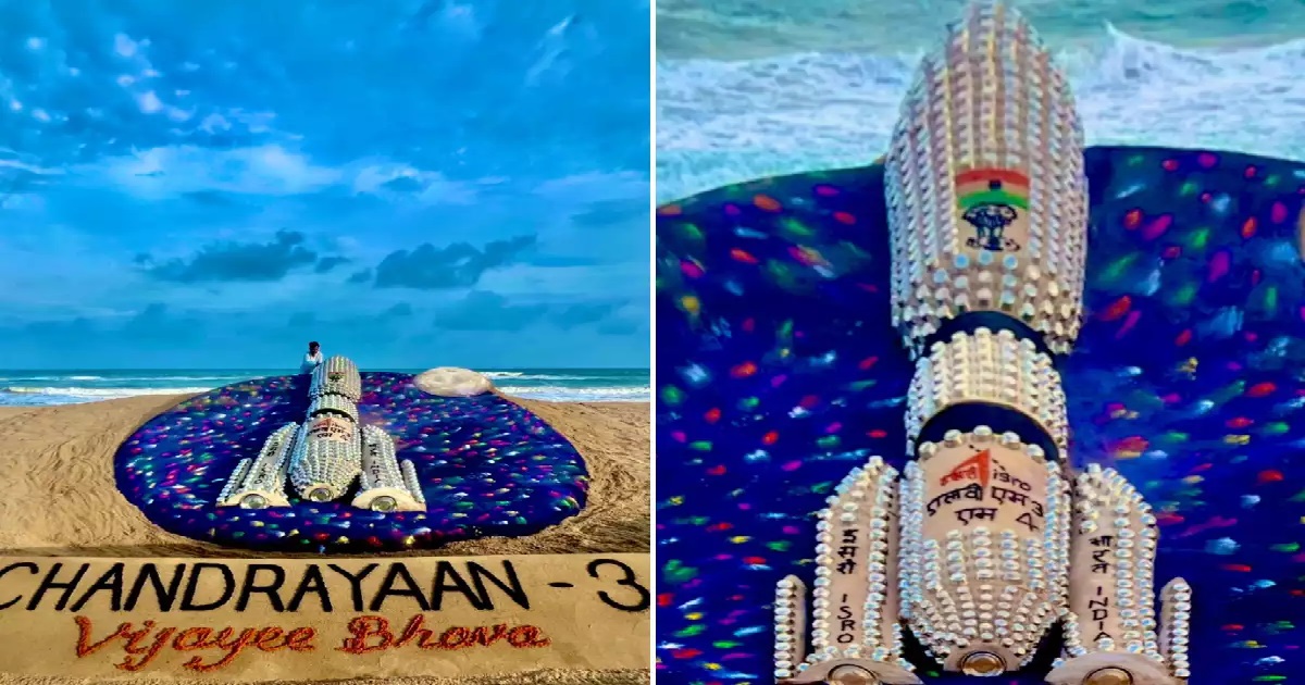 Chandrayaan-3 Moon Mission: भारत के अंतरिक्ष मिशन चंद्रयान-3 (Chandrayaan-3) को लेकर पूरे देश में उत्साह देखने को मिल रहा है. इसकी सफलता के लिए देश में दुआओं का दौर जारी है. चंद्रयान-3 मिशन सफल हो इसे लेकर देशभर में लोग अपने-अपने तरीके से प्रार्थना कर रहे हैं. इस बीच सैंड आर्टिस्ट सुदर्शन पटनायक की टीम ने ओडिशा के पुरी समुद्र तट पर अपनी कला से शुभकामनाएं दी हैं.