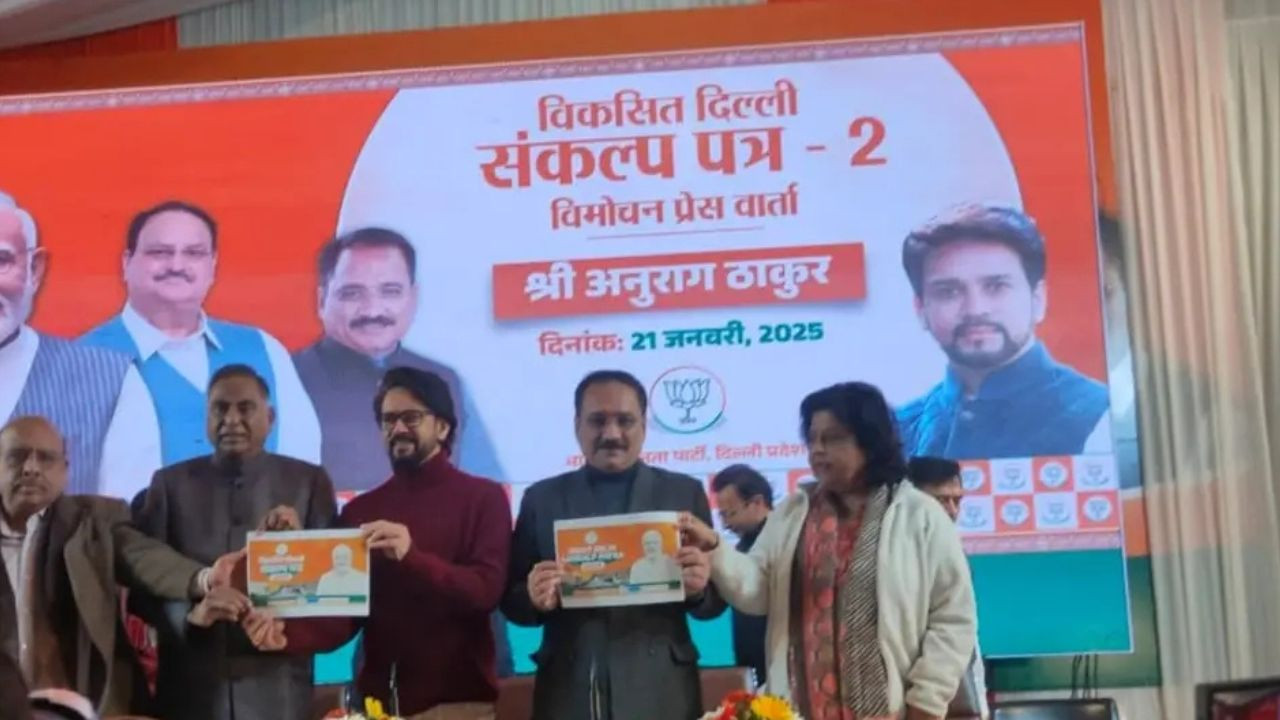 BJP Sankalp Patra Part Two: दिल्ली विधानसभा चुनाव को लेकर सभी पार्टियों ने अपनी तैयारी कर ली है. इसी क्रम में बीजेपी ने संकल्प पत्र का दूसरा भाग जारी कर दिया है. बीजेपी सांसद अनुराग ठाकुर ने मंगलवार को पार्टी के संकल्प पत्र का दूसरा भाग जारी किया है.जिसमें स्वास्थ्य और यातायात और युवाओं का पूरा ख्याल रखा गया है.