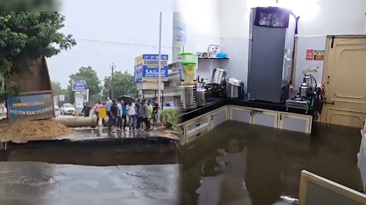 स्मार्ट सिटी अहमदाबाद में भारी बारिश के कारण एक मुख्य सड़क धंस गई , जिससे कई घंटों तक ट्रैफिक प्रभावित हुआ. वहीं, भारी बारिश के बाद निचले इलाकों में पानी भर गया. न्यूज एजेंसी ANI की ओर से शेयर किए गए एक वीडियो में भारी बारिश के कारण शहर के शेला इलाके में सड़क धंसी हुई दिखाई दे रही है. सड़क के बीचों-बीच एक बड़ा गड्ढा बना दिखा.