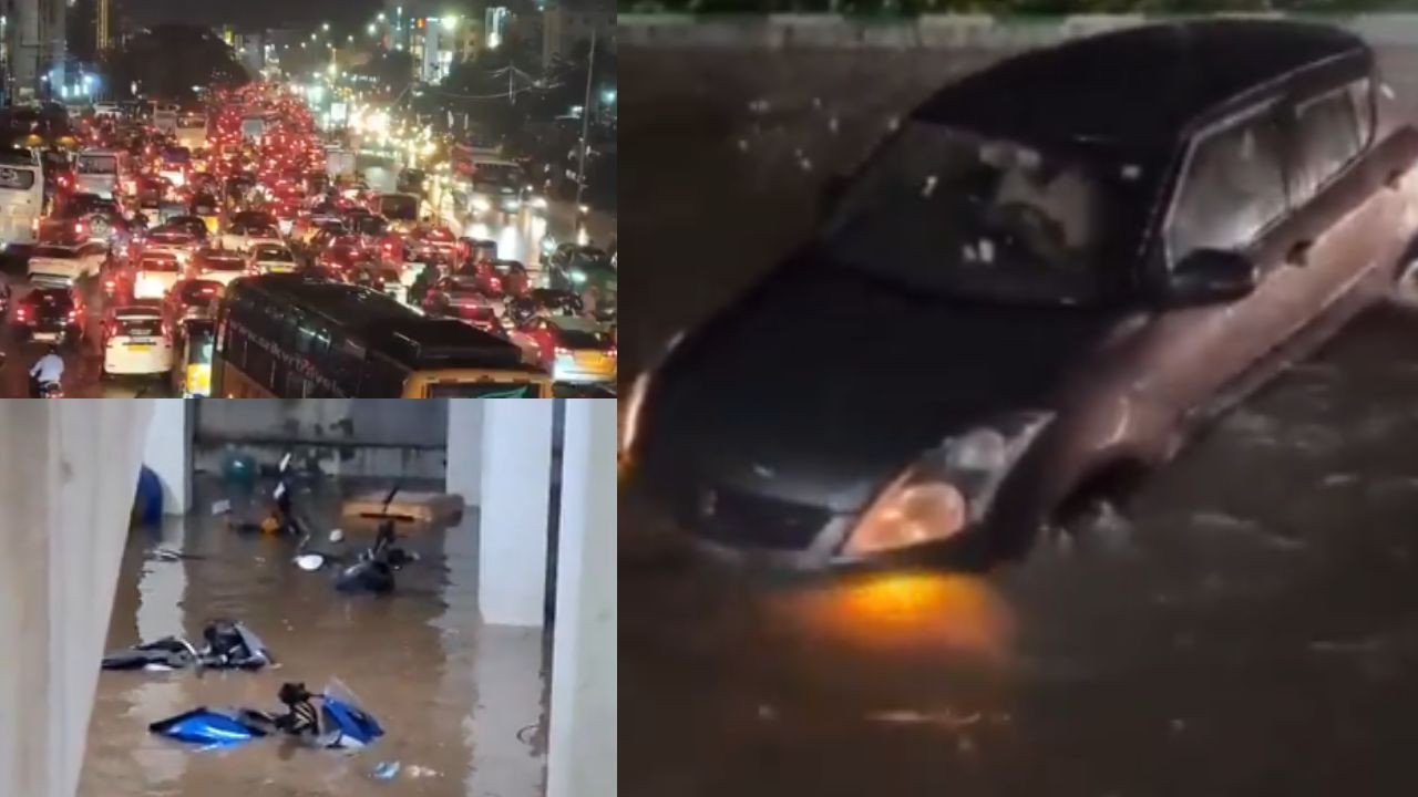 अचानक हुई भारी बारिश के कारण शहर के कई इलाकों में जलभराव, गंभीर यातायात जाम और बिजली आपूर्ति बाधित हो गई, खासकर व्यस्त समय के दौरान. आईटी हब रोड नदियों की ओर मुड़ता है