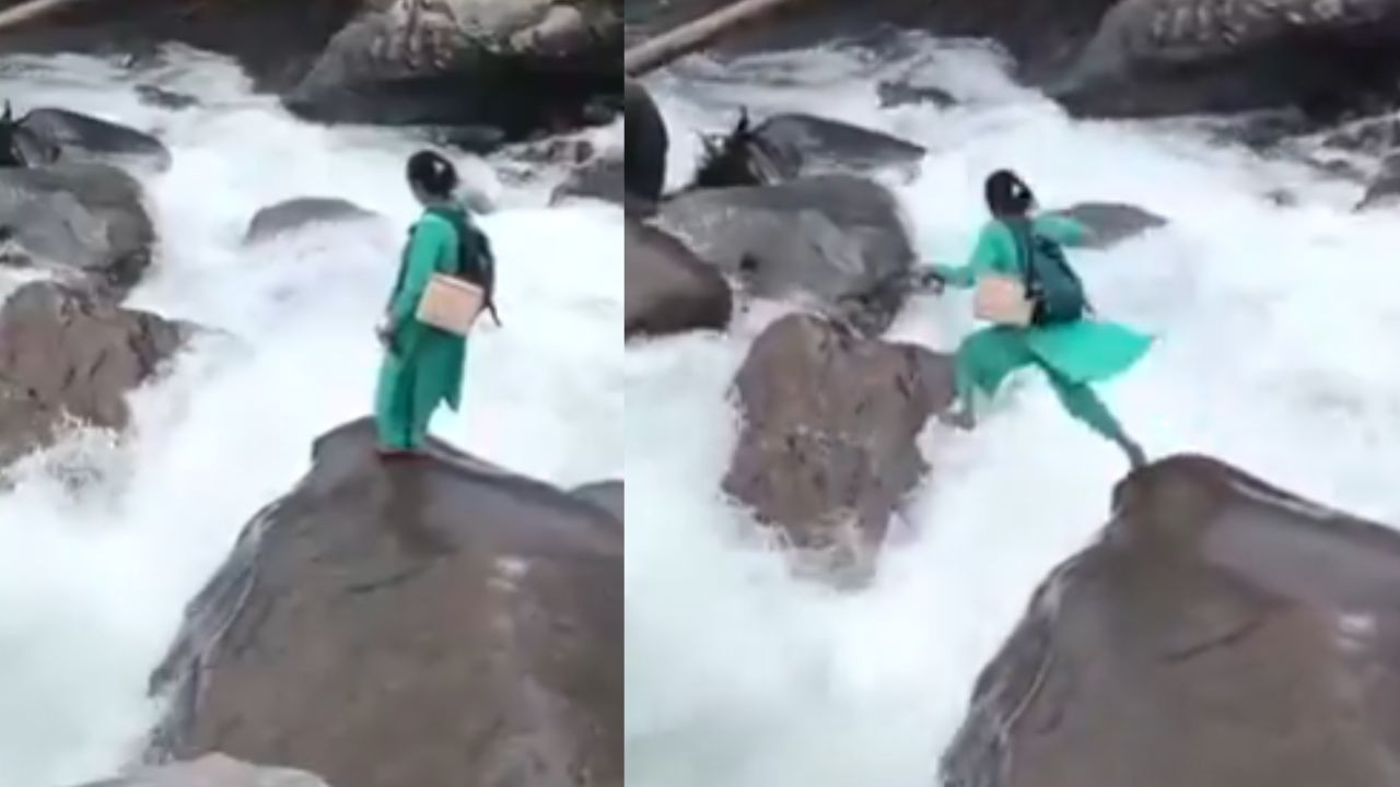 यह घटना चौहारघाटी की सुधार पंचायत के गढ़ नाले की है, जहां कमला उफनते नाले को पार करते हुए दिखाई दे रही हैं. वीडियो में साफ नजर आता है कि नाला अपने पूरे उफान पर है, लेकिन कमला पत्थरों पर कूदकर उसे पार करती हैं, बिना किसी डर के.