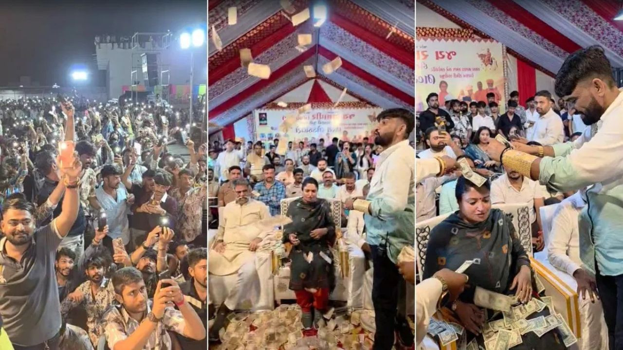 जामनगर जिले के कलावड़ तालुका स्थित राणुजा गांव में भरवाड़ समाज और देवस्थान समिति द्वारा आयोजित इस तीन दिवसीय मेले में सांसद पूनमबेन मदाम को मुख्य अतिथि के तौर पर आमंत्रित किया गया. कार्यक्रम में रामधनी ग्रुप के सदस्यों ने उन्हें पगड़ी पहनाकर सम्मानित किया और फिर डॉलर, सोने-चांदी के नोट और 500 रुपये की गड्डियों की वर्षा कर दी. यह नजारा देखकर वहां मौजूद श्रद्धालु भी दंग रह गए और मोबाइल कैमरे में इस पल को कैद करने लगे. वीडियो सोशल मीडिया पर तेजी से वायरल हो रहा है.