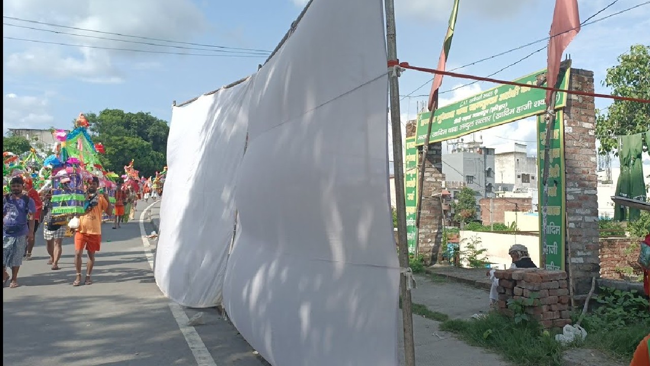 VIDEO | #Uttarakhand: Curtains installed outside a mosque and a 'mazaar' in Ram Nagar Colony and Durga Chowk respectively along the '#Kanwar' route in Haridwar by the local administration.