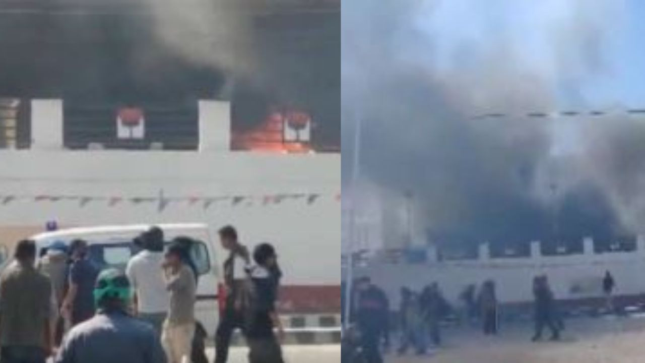 #WATCH | Leh, Ladakh: BJP Office in Leh set on fire during a massive protest by the people of Ladakh demanding statehoothe d and the inclusion of Ladakh under the Sixth Schedule turned into clashes with Police. https://t.co/yQTyrMUK7q pic.twitter.com/x4VqkV8tdd