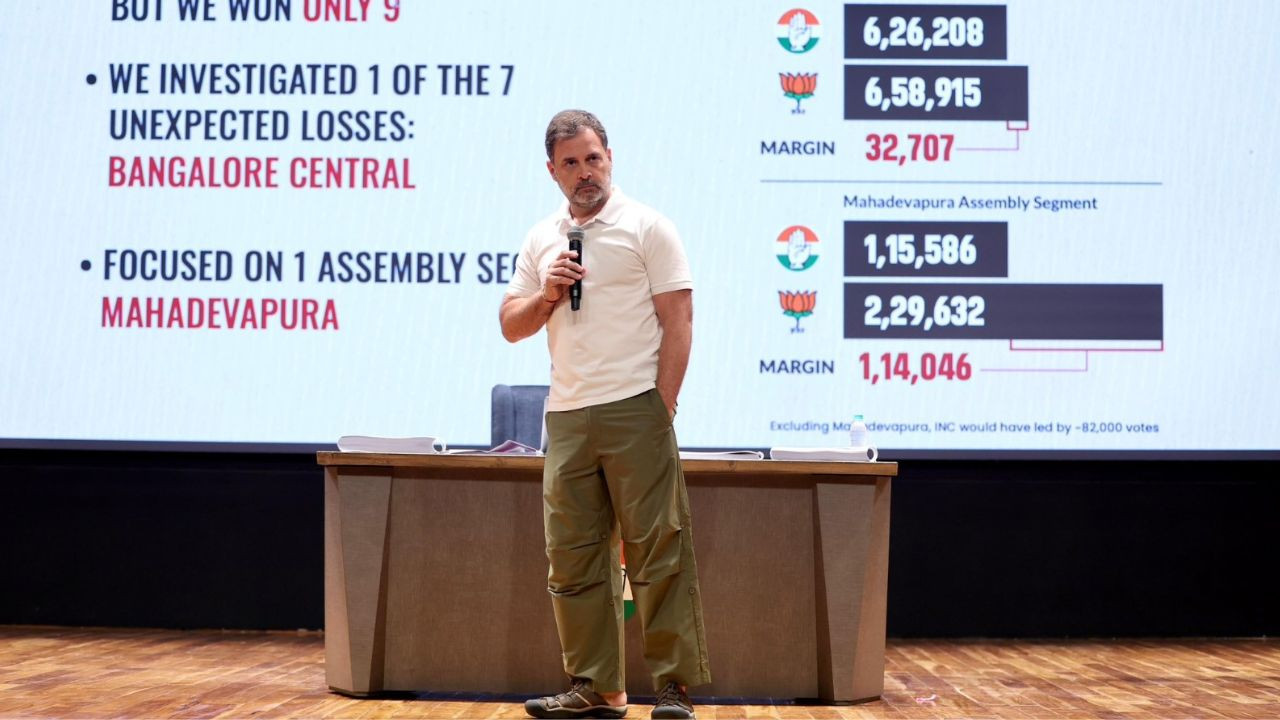 गुरुवार को नेता प्रतिपक्ष राहुल गांधी ने कर्नाटक की एक विधानसभा क्षेत्र का डेटा सामने रखते हुए आरोप लगाया था कि वोटर लिस्ट में हेरफेर करते वोट चोरी का यह मॉडल कई निर्वाचन क्षेत्रों में लागू किया गया है ताकि बीजेपी को फायदा मिल सके. राहुल गांधी ने कर्नाटक के महादेवपुरा विधानसभा की वोटर लिस्ट के आंकड़ों को दिखाते हुए इसमें धांधली का दावा किया था.