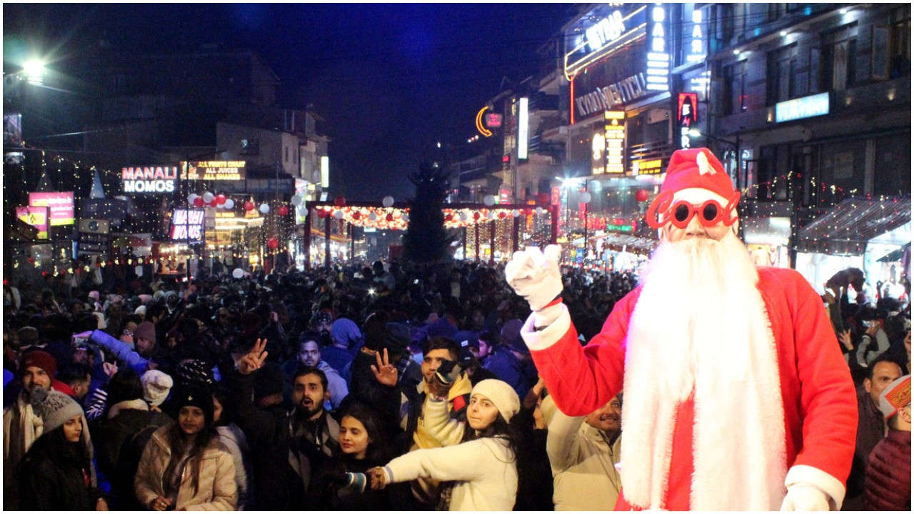 क्रिसमस की शाम मनाली का माल रोड पूरी तरह से जश्न के रंग में डूबा रहा. बाहरी राज्यों से आए पर्यटक डीजे की धुन पर थिरकते नजर आए. शाम होते ही माल रोड पर भारी भीड़ जमा हो गई. सैलानी नाच गाने के साथ साथ खरीदारी का भी जमकर आनंद लेते दिखे. दुकानों और कैफे में देर रात तक रौनक रही.
