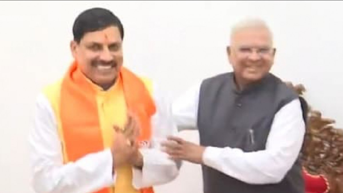 #WATCH | Madhya Pradesh CM-designate Mohan Yadav meets Governor Mangubhai C. Patel at Raj Bhavan in Bhopal and stakes claim to form the government pic.twitter.com/AWkHiHGKvL