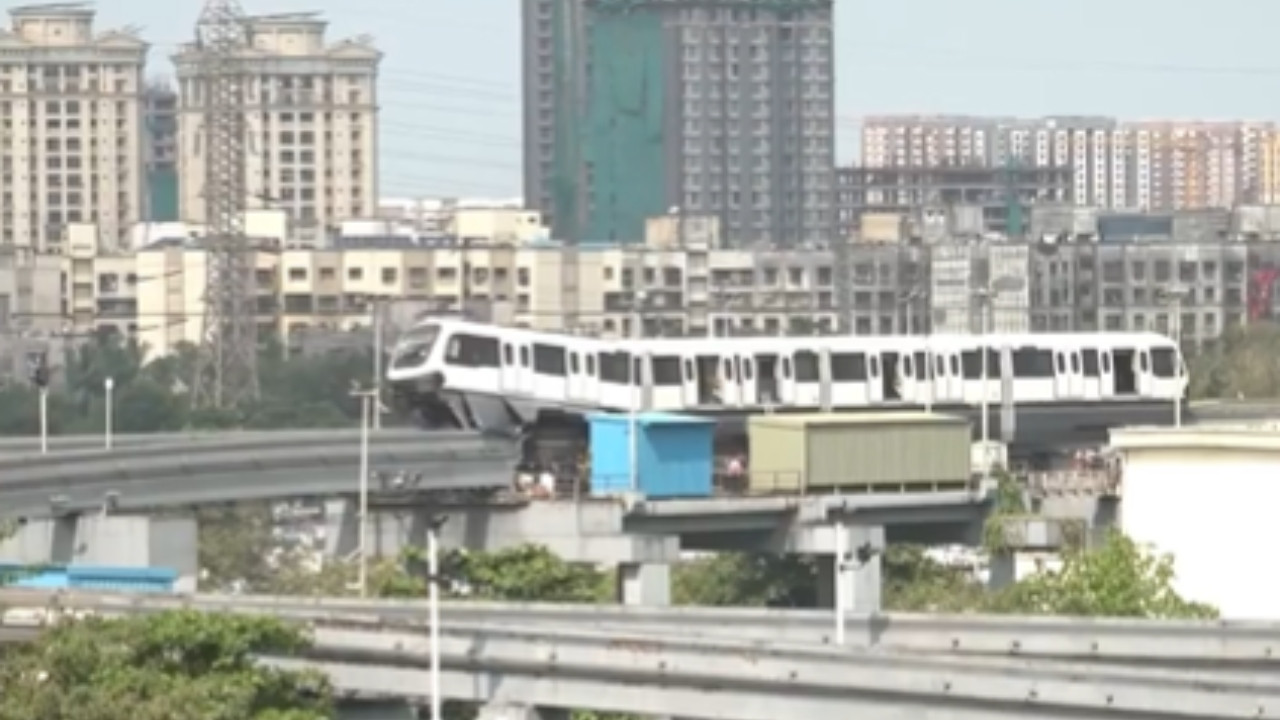 VIDEO | Mumbai: A monorail train tilted during a test run at Wadala depot on Wednesday morning, officials said, adding that there were no passengers inside the train. No injury was reported in the incident, they said. Two crew members were safely rescued from the monorail, a fire… pic.twitter.com/GAzGoSz6VU