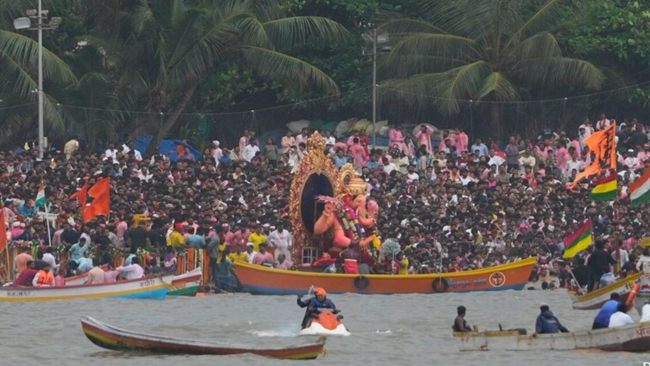 लालबागचा राजा की मूर्ति को विसर्जन के लिए शनिवार दोपहर से शुरू हुई भव्य शोभायात्रा के बाद, गिरगांव चौपाटी पर लाया गया. हालांकि, उच्च ज्वार और तकनीकी समस्याओं के कारण सुबह से कई बार विसर्जन के प्रयास विफल रहे. मूर्ति को रविवार दोपहर 4:45 बजे सैकड़ों स्वयंसेवकों और मछुआरों की मदद से एक नवनिर्मित राफ्ट पर स्थानांतरित किया गया. इस राफ्ट को हाइड्रोलिक सिस्टम और इलेक्ट्रिकल नियंत्रणों के साथ डिजाइन किया गया है, ताकि मूर्ति को अस्थिर समुद्र में भी स्थिर रखा जा सके.