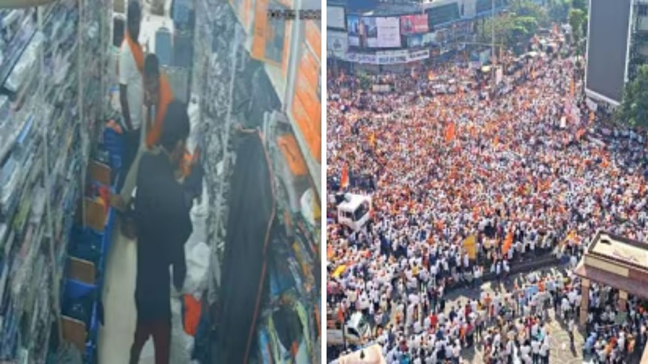 Mumbai Theft Case: मुंबई के फोर्ट इलाके में एक परिधान दुकान से चोरी का मामला सामने आया है. यह घटना ऐसे समय में हुई है जब पूरे महाराष्ट्र में मराठा आरक्षण आंदोलन अपने चौथे दिन में प्रवेश कर चुका है और हालात तनावपूर्ण बने हुए हैं. पुलिस के अनुसार दुकान में लगे सीसीटीवी कैमरे में कुछ लोगों को कपड़े चुराते हुए देखा गया है. फुटेज में संदिग्धों को प्रदर्शनकारियों जैसे कपड़े पहने हुए दिखाया गया, जो सामान उठाकर दुकान से बाहर निकल गए.