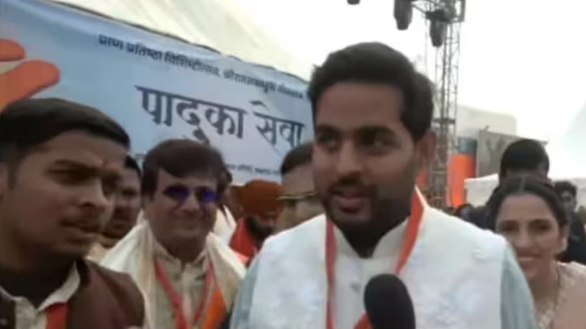 Ram Temple Consecration: राम मंदिर प्राण प्रतिष्ठा को लेकर पूरे देश में जश्न का माहौल है. राजनीति, खेल, फिल्म और अर्थ जगत की तमाम बड़ी हस्तियां इस ऐतिहासिक अवसर पर अयोध्या पहुंची हैं. अंबानी परिवार के लाडले और रिलायंस जियो इन्फोकॉम लिमिटेड के चेयरमैन आकाश अंबानी अपनी पत्नी श्लोका मेहता के साथ प्राण प्रतिष्ठा कार्यक्रम में शामिल होने अयोध्या के श्री राम जन्मभूमि मंदिर पहुंचे.