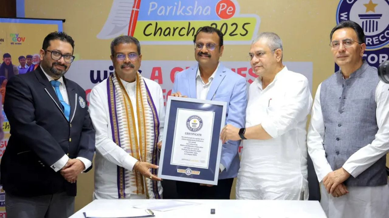 इस रिकॉर्ड की आधिकारिक घोषणा नई दिल्ली में हुए एक विशेष समारोह के दौरान की गई, जिसमें गिनीज वर्ल्ड रिकॉर्ड्स के निर्णायक ऋषि नाथ द्वारा प्रमाण पत्र सौंपा गया. इस मौके पर केंद्रीय शिक्षा मंत्री धर्मेंद्र प्रधान, केंद्रीय मंत्री अश्विनी वैष्णव, राज्य मंत्री जितिन प्रसाद, स्कूल शिक्षा और साक्षरता विभाग के सचिव संजय कुमार और 'MyGov' के सीईओ नंद कुमारम सहित अन्य वरिष्ठ अधिकारी उपस्थित रहे.