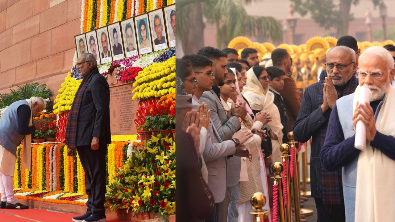#WATCH | Delhi: Vice President CP Radhakrishnan, Prime Minister Narendra Modi and other parliamentarians pay tribute to the security personnel who lost their lives in the 2001 Parliament attack on the occasion of its anniversary today.