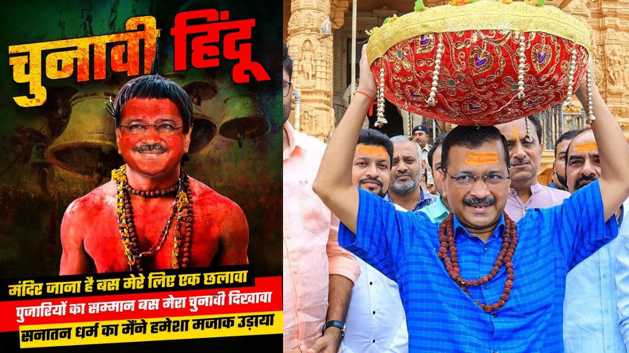 भारतीय जनता पार्टी की ओर से पोस्टर जारी किया गया है. जिसमें पार्टी ने केजरीवाल का मजाक उड़ाते हुए उन्हें नकली पुजारी जैसे अवतार में दिखाया है. अरविंद केजरीवाल भूल भुलैया के अभिनेता राजपाल यादव के किरदार की याद दिला रहे हैं. जिसमें उन्होंने पूरे शरीर पर लाल रंग का सिंदूर लगाया है. वहीं गले में रुद्राक्ष और फूलों की माला है. वहीं कानों पर अगरबत्ती जलती नजर आ रही है.