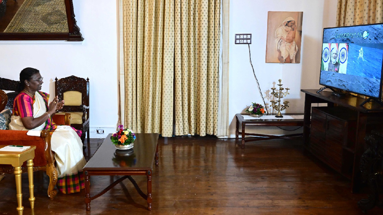 After watching live telecast of moon landing of Vikram lander, President Droupadi Murmu conveyed her congratulatory message to ISRO and everyone associated with Chandrayaan-3 mission. pic.twitter.com/Q5Yj4tq1kI