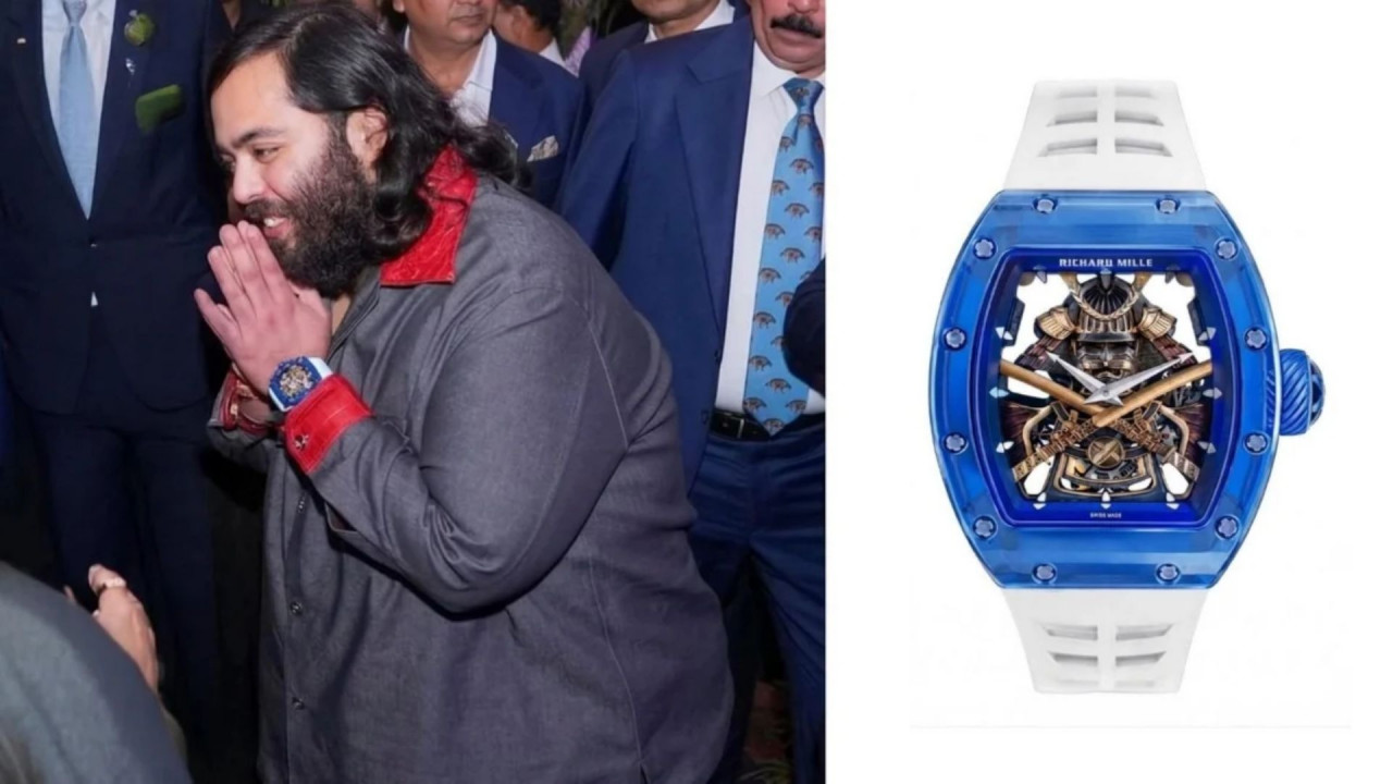 अनंत अंबानी ने Richard Mille की RM 47 Samurai Tourbillon पहनी थी. इसकी कीमत करीब 10 मिलियन डॉलर (92 करोड़ रुपए) बताई जा रही है. खास बात यह है कि इस मॉडल की दुनिया में सिर्फ 75 यूनिट्स ही बनाई गई हैं. यही वजह है कि यह घड़ी कलेक्टर्स के बीच बेहद खास मानी जाती है.