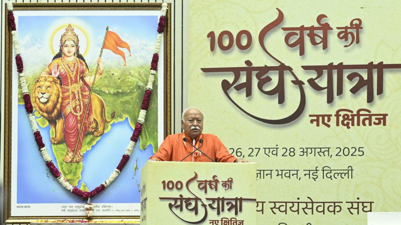 राष्ट्रीय स्वयंसेवक संघ (आरएसएस) ने अपने स्थापना के 100 वर्ष पूरे होने पर '100 साल की संघ यात्रा: नए क्षितिज' थीम के तहत मंगलवार से नई दिल्ली के विज्ञान भवन में तीन दिवसीय कार्यक्रम शुरू किया. पहले दिन आरएसएस प्रमुख मोहन भागवत ने भारत के भविष्य को आकार देने और समाज की भूमिका पर अपने विचार शेयर किए. उन्होंने जोर देकर कहा कि देश का परिवर्तन किसी एक नेता या संगठन के भरोसे नहीं, बल्कि पूरे समाज के सामूहिक प्रयासों से संभव है.