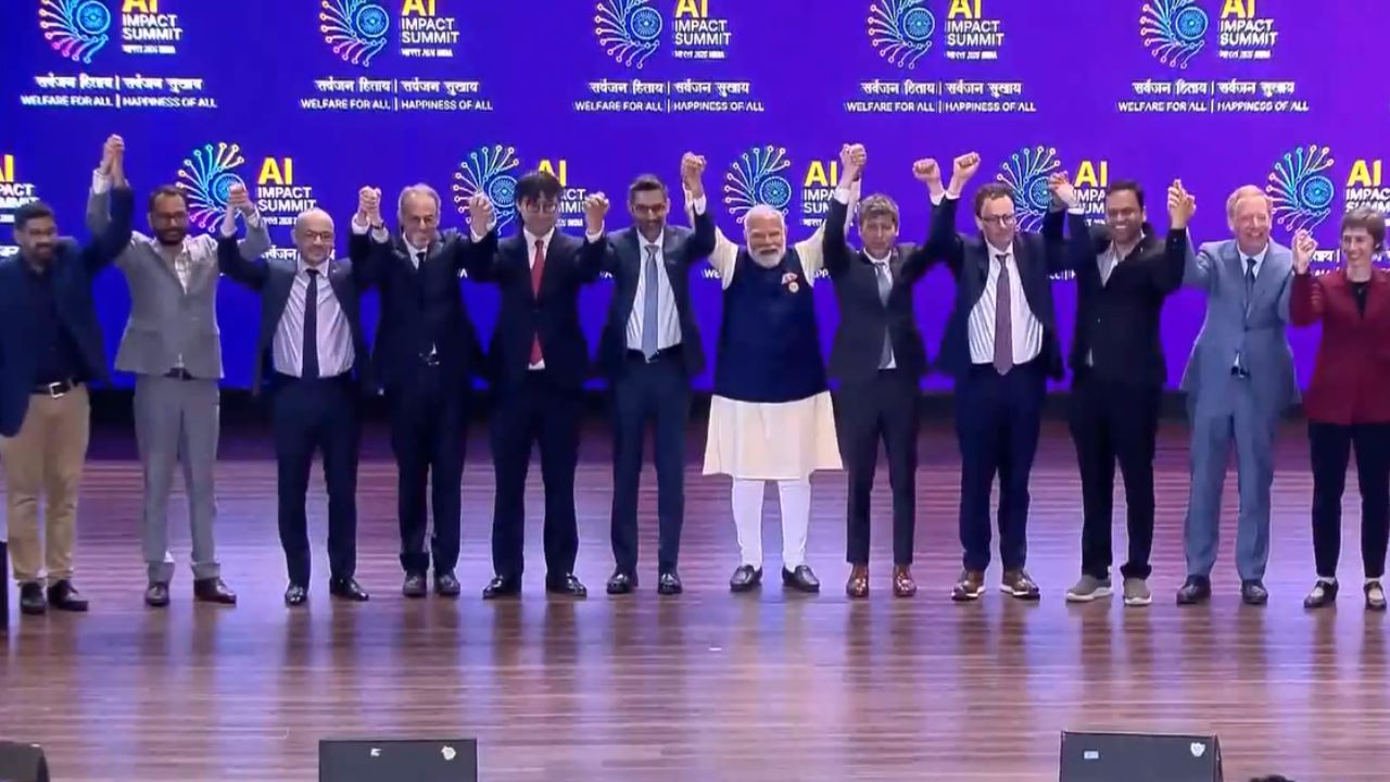 पूरे इवेंट और कीनोट्स के दौरान सभी कुछ ठीक से चल रहा था, लेकिन इंडिया AI इम्पैक्ट समिट में एक रूटीन ग्रुप फोटो के दौरान यह टॉपिक वायरल प्वाइंट बन गया. कीनोट सेशन के बाद, प्रधानमंत्री मोदी ने वहां मौजूद सभी बड़े ग्लोबल AI लीडर्स के साथ एक ग्रुप फोटो लेने के लिए पोज दिया. इस समय गूगल के CEO सुंदर पिचाई, ओपनAI के सैम ऑल्टमैन भी मौजूद थे. सैम ऑल्टमैन के बराबर में एंथ्रोपिक के CEO डारियो अमोदेई भी मौजूद थे.