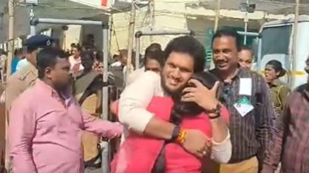 #WATCH | Maharashtra civic body elections | Jalgaon: Emotional scenes in Jalgaon as Sarita Kolhe shares a hug with Mahayuti candidate Piyush Lalit Kolhe and breaks down.