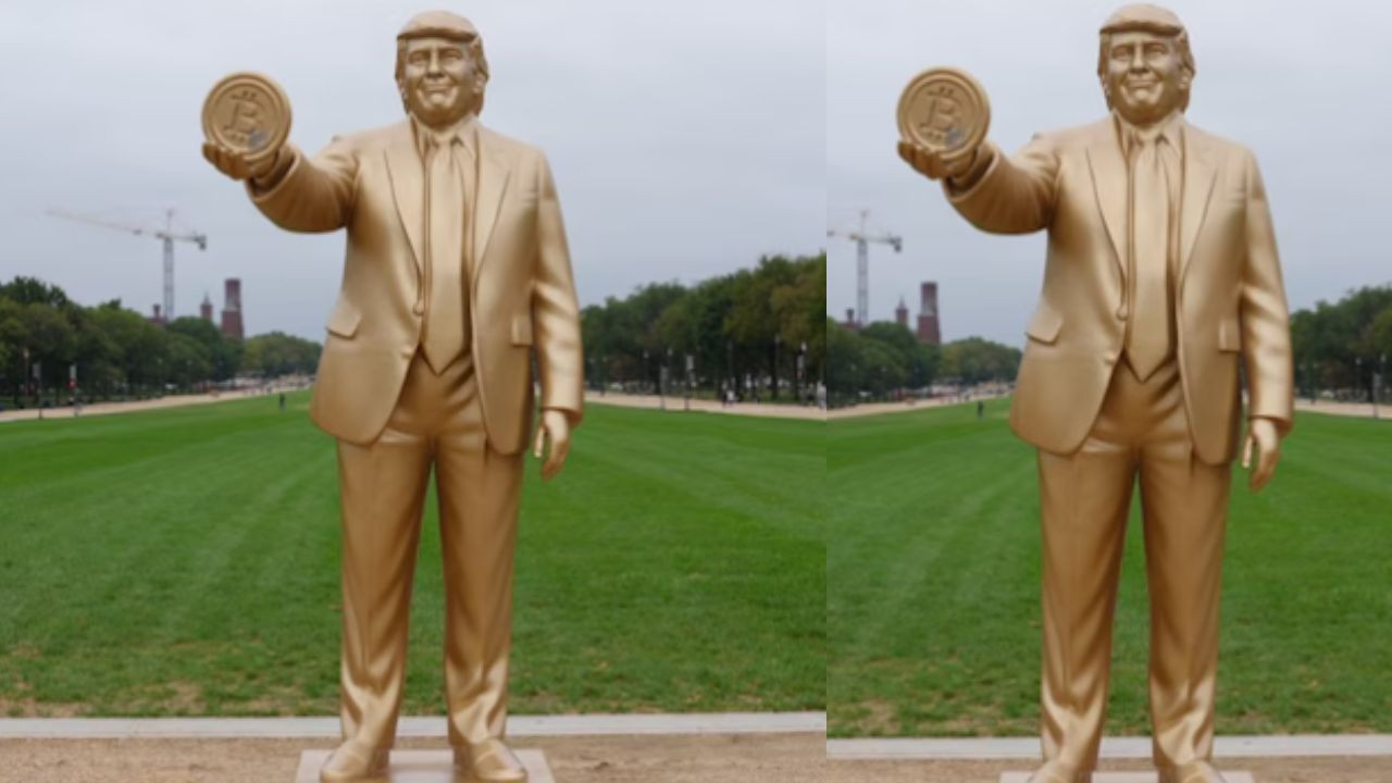 Donald Trump Golden Statue: अमेरिकी कैपिटल के बाहर अमेरिका के राष्ट्रपति डोनाल्ड ट्रंप की 12 फुट ऊंची मूर्ति स्थापित की गई है. जिसमें ट्रंप एक बिटकॉइन पकड़े नजर आ रहा है. इस मूर्ति को लेकर लोगों के बीच बहस तेज हो गई है. इस मूर्ति के लिए क्रिप्टोकरेंसी के निवेशकों ने फंड दिया है.