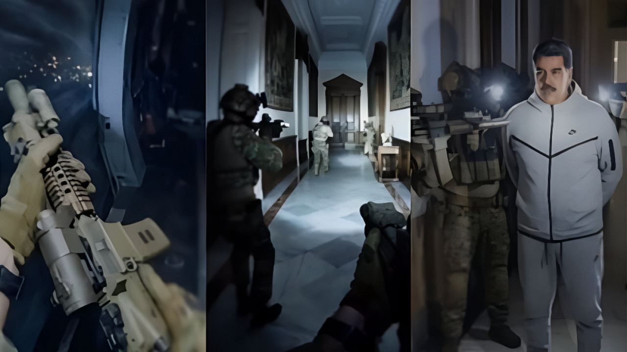 वायरल हुए वीडियो में अमेरिका का चेहरा दुनिया को साफ दिख रहा है. अमेरिका की स्पेशल टीम में कई लोग दिख रहे हैं. वह अपने स्पेशल हेलीकॉप्टर से वेनेजुएला में घुसते हुए दिखा. काराकस की लाइट काट उन्होंने मादुरो के आलीशान बंगले पर धावा बोल दिया. बंदूकों के साथ वह धीरे-धीरे उसके घर में घुसते दिखे. वहीं मादुरो ने अपने बेडरूम से भाग बंकर में जाने की कोशिश की, लेकिन अमेरिकी सैनिकों ने उसे तुरंत अपने कब्जे में ले लिया. जिसके बाद वह उसे अपने साथ अमेरिका ले गए.