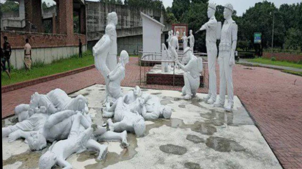 Sad to see images like this of statues at the 1971 Shaheed Memorial Complex, Mujibnagar, destroyed by anti-India vandals. This follows disgraceful attacks on the Indian cultural centre, temples and Hindu homes in several places, even as reports came in of Muslim civilians… pic.twitter.com/FFrftoA81T
