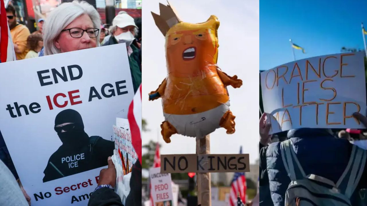 No Kings Protest Against Donald Trump: अमेरिका में डोनाल्ड ट्रंप प्रशासन के खिलाफ हुए 'नो किंग्स प्रोटेस्ट' में लोगों ने अपनी नाराजगी कुछ अलग अंदाज में जताई. न्यूयॉर्क से लेकर लॉस एंजिलिस तक सड़कों पर उतरे हजारों प्रदर्शनकारियों ने पोस्टर्स पर लिखा 'End the ICE Age' और 'Orange Lies Matter', जो सोशल मीडिया पर वायरल हो गए.