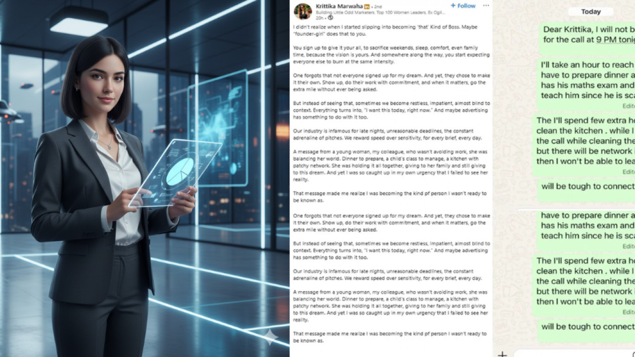 मरवाहा ने लिखा, “जब आप एक संस्थापक होते हैं तो अपने सपने को पूरा करने के लिए सब कुछ लगा देते हैं चाहे वो वीकेंड हो , नींद हो या परिवार का समय हो. फिर धीरे-धीरे आप उम्मीद करने लगते हैं कि बाकी लोग भी उसी तीव्रता से काम करें.” कृतिका ने स्वीकार किया कि वह अपनी ही जल्दबाजी और महत्वाकांक्षा में इतनी उलझ गई थीं कि सहयोगी की वास्तविक परिस्थितियों को समझ ही नहीं पाईं. उन्होंने लिखा, “उस MSG ने मुझे एहसास कराया कि मैं वही इंसान बन रही थी, जिसे बनने से मैंने हमेशा इनकार किया था. वह जो यह भूल जाता है कि लोग किराया, घर, स्कूल फीस, नेटवर्क की दिक्कतों और रोजमर्रा की भागदौड़ के बीच भी मेहनत से काम कर रहे होते हैं.”