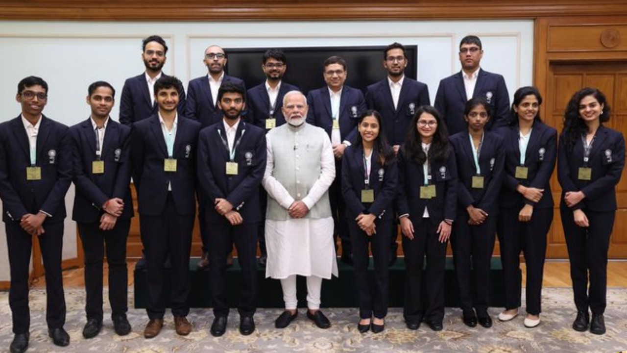 पीएम मोदी से मुलाकात के दौरान भारत की महिला टीम से डी हरिका, वैशाली रमेश बाबू, दिव्या देशमुख, तानिया सचदेवा और वंतिका अग्रवाल नजर आईं, वहीं मेंस टीम से डी. गुकेश, आर. प्रागनानंदा, अर्जुन एरिगैसी, विदित गुजराती और हरिकृष्ण पेंटाला मिलने पहुंचे थे.