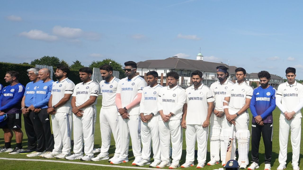 Ahemdabad Plane Crash: इंग्लैंड दौरे पर गई भारतीय क्रिकेट टीम ने 12 जून 2025 को अहमदाबाद में हुए दुखद विमान हादसे के पीड़ितों को श्रद्धांजलि दी. इंग्लैंड के खिलाफ टेस्ट सीरीज से पहले शुक्रवार, 13 जून को बेकेनहम के केंट क्रिकेट ग्राउंड में खेले गए इंट्रा-स्क्वॉड प्रैक्टिस मैच से पहले भारतीय खिलाड़ियों और सपोर्ट स्टाफ ने एक मिनट का मौन रखा और काली पट्टी बांधकर पीड़ितों के प्रति सम्मान व्यक्त किया. यह भावनात्मक पल क्रिकेट से परे एकजुटता और संवेदना का प्रतीक था.