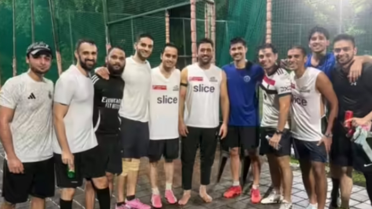 एमएस धोनी हाल के महीनों में मीडियो से दूर रहे हैं और यही बात उनकी फिटनेस रूटीन पर भी लागू होती है क्योंकि आईपीएल 2026 सीजन में उनके खेलने की अटकलें जारी हैं. हालांकि पूर्व भारतीय कप्तान ने अभी तक अपने इरादों को आधिकारिक तौर पर जाहिर नहीं किया है. लेकिन उनकी हालिया सार्वजनिक उपस्थिति ने प्रशंसकों को पूरी तरह से चौंका दिया है. धोनी फुटबॉल मैच के दौरान मुंबई इंडियंस की जर्सी पहने नजर आए. स्लीवलेस एमआई टैंक टॉप पहने धोनी ने मैच के बाद तस्वीरें खिंचवाईं, जो सोशल मीडिया पर वायरल हो गई है.