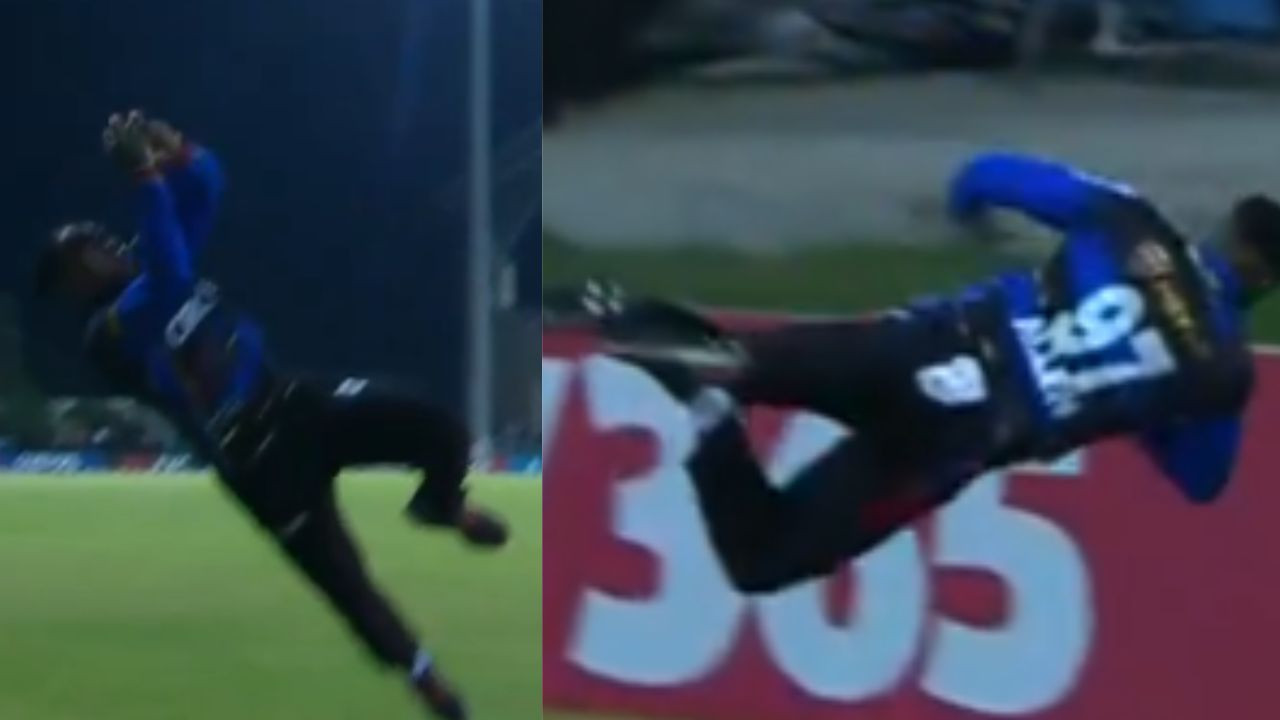 लॉन्ग ऑफ पर फील्डिंग कर रहे फेबियन एलन ने गेंद को बाउंड्री पार करने से रोकने के लिए हवा में लंबी छलांग लगाई. उन्होंने सुपरमैन की तरह डाइव करते हुए गेंद को हवा में ही पकड़ा और उसे मैदान के अंदर फेंक दिया. इस शानदार प्रयास से उन्होंने अपनी टीम के लिए 4 रन बचा लिए.