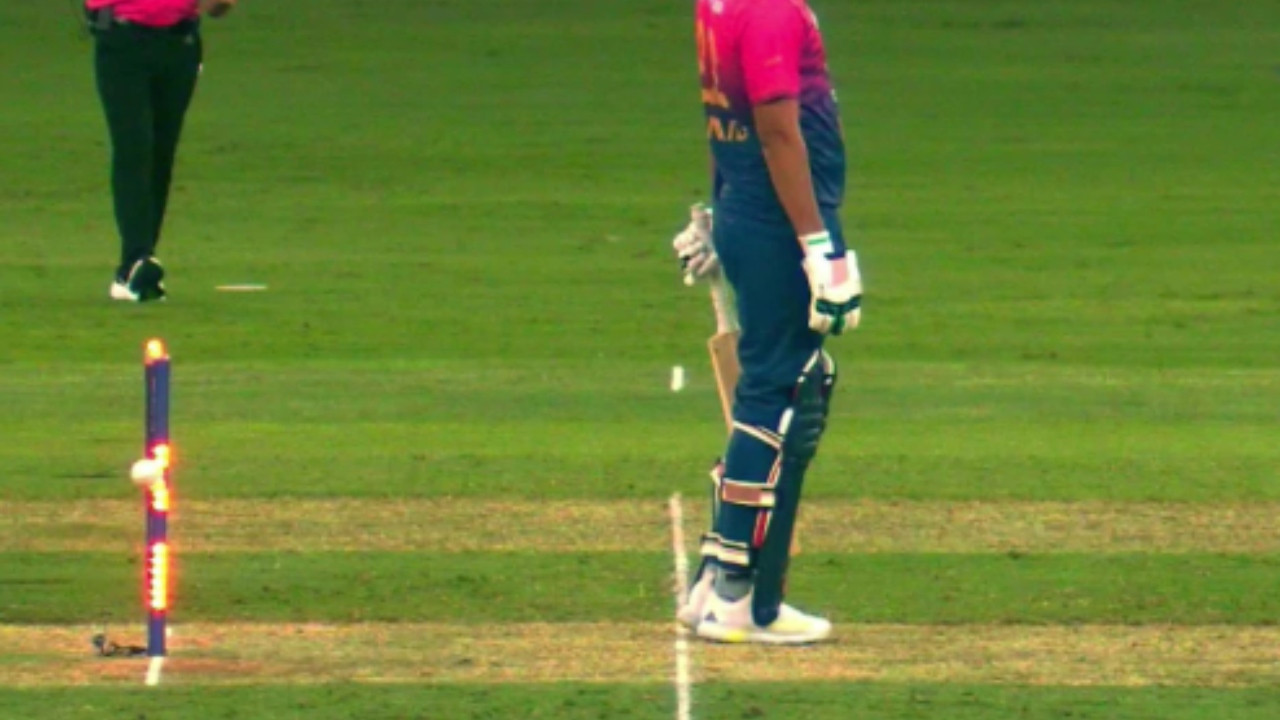 बॉल मिस करने के बाद जुनैद सिद्दीकी क्रीज के बाहर ही खड़े थे. भारतीय विकेटकीपर संजू सैमसन ने सूझबूझ दिखाते हुए सीधा थ्रो मारा. जुनैद अपनी क्रीज से बाहर थे. फैसला तीसरे अंपायर के पास भेजा गया और रीप्ले में दिखा कि जुनैद का पैर पॉपिंग क्रीज से बाहर था.