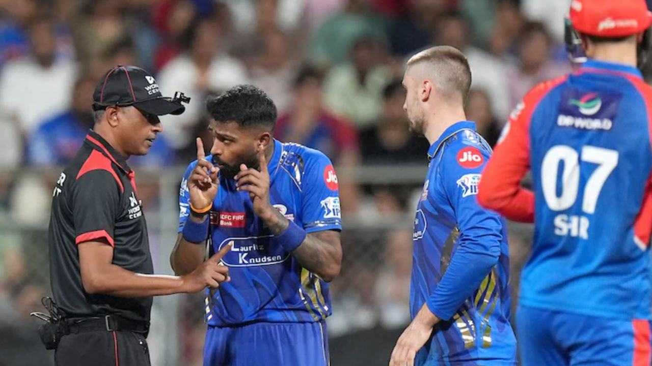IPL 2025, MI vs DC: इंडियन प्रीमियर लीग (IPL) 2025 में मुंबई इंडियंस (MI) और दिल्ली कैपिटल्स (DC) के बीच हुए मुकाबले में एक अनोखा वाकया देखने को मिला. मुंबई के कप्तान हार्दिक पांड्या की एक गलती के कारण उनकी टीम को नो-बॉल की सजा भुगतनी पड़ी, जिसके बाद हार्दिक ने अंपायर से बहस भी की. यह घटना वानखेड़े स्टेडियम में 22 मई 2025 को खेले गए मैच के दौरान हुई, जब मुंबई ने दिल्ली को 59 रनों से हराकर प्लेऑफ में अपनी जगह पक्की की.