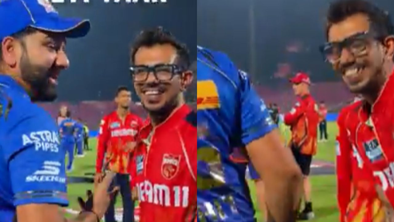 Rohit Sharma: भारत के स्टार क्रिकेटर रोहित शर्मा और युजवेंद्र चहल मस्ती करने में कभी पीछे नहीं रहते. ऐसा ही एक मजेदार पल हाल ही में देखने को मिला जब ये दोनों मैदान पर मस्ती भरी बातचीत करते हुए दिखाई दिए. यह घटना पंजाब किंग्स (PBKS) और मुंबई इंडियंस (MI) के बीच एक मैच के बाद हुई, जिसमें पंजाब ने मुंबई को हराया था.