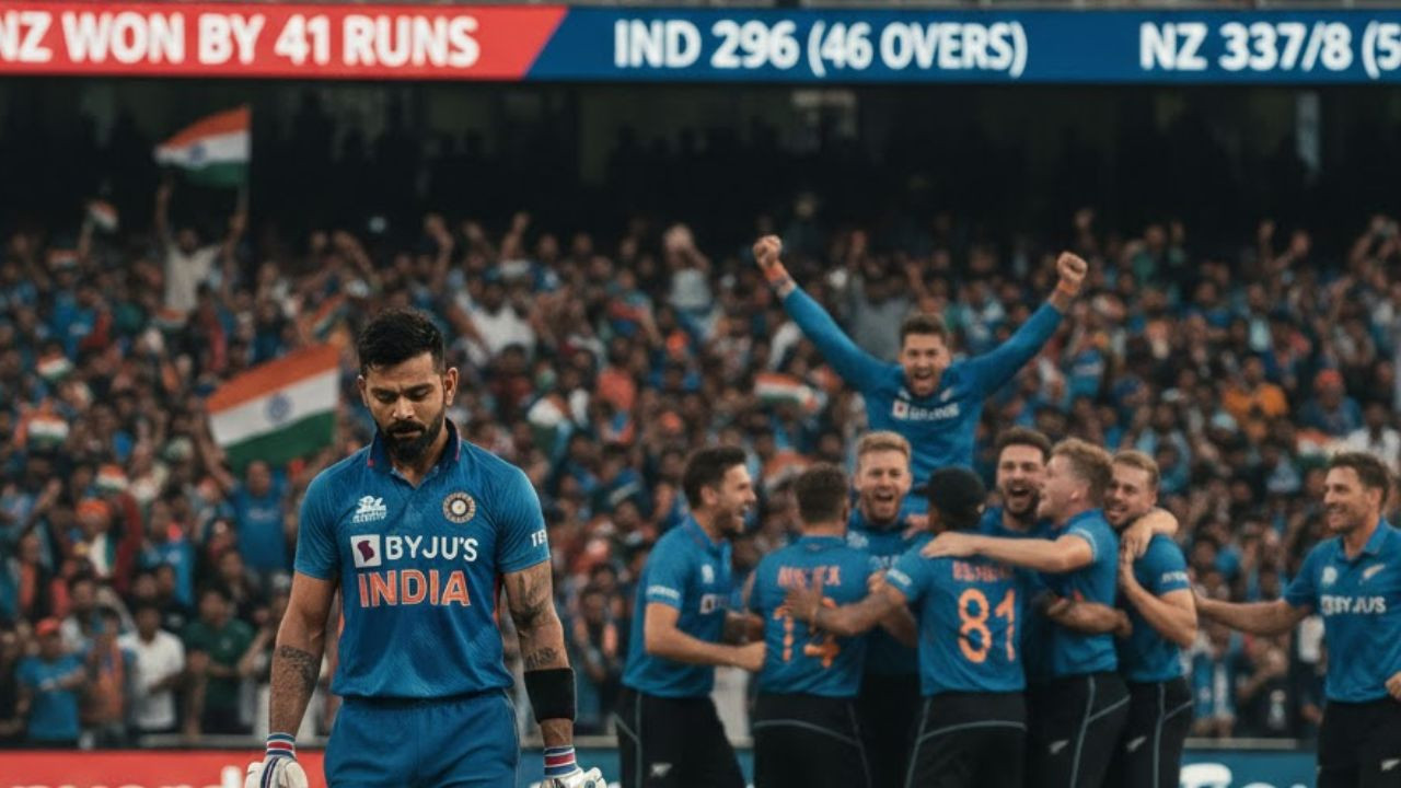 नई दिल्ली: भारतीय क्रिकेट के लिए आज का दिन किसी बुरे सपने से कम नहीं रहा. इंदौर के होल्कर स्टेडियम में खेले गए आखिरी मुकाबले में न्यूजीलैंड ने भारत को 41 रनों से हराकर तीन मैचों की वनडे सीरीज 2-1 से अपने नाम कर ली है. किंग विराट कोहली के 124 रनों के शतक के बावजूद टीम इंडिया लक्ष्य का पीछा करने में नाकाम रही और पूरी टीम 296 रनों पर ढेर हो गई.